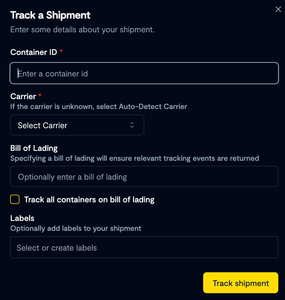 Labels can be assigned to shipments for better custom organization. These labels are free-text and can be used to categorize shipments by priority, region, customer, or any other internal classification.